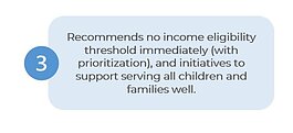 سيكون برنامج “التعليم ما قبل الابتدائي للجميع” متاحًا لجميع السكان بغض النظر عن الدخل، مع إعطاء الأولوية للعائلات الأقل امتيازًا، لضمان إحالة العائلات إلى البرنامج الذي يناسب احتياجات طفلهم بشكل أفضل، مثل برنامج “Head Start”.