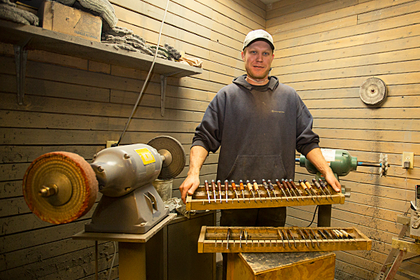 “In past years, we’ve been busiest mainly from September through Christmas, but this year, we’ve been really busy all summer long,” says Hess, taking a break from his work that sees him manufacture up to 1,500 knives per year.