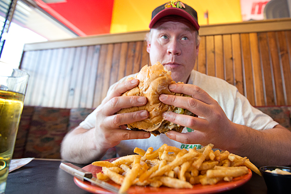 And what a feat it is. This burger consists of five, one-third-pound beef patties (70/30 ground ground chuck), a quarter-pound of cheese, a half-pound of veggies (lettuce, tomato, onion) and one solid bun from Jackson’s La Panetteria Bakery in Bessemer.
