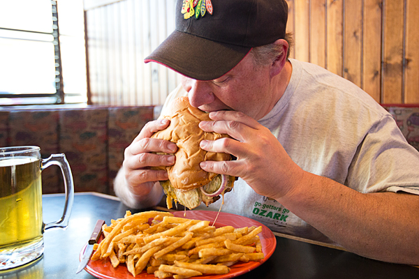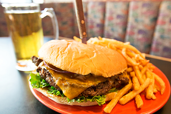 Those seeking burger immortality here must consume a burger that consists of a solid-as-a-rock two-pound beef patty, stacked generously with lettuce, tomatoes, pickles and onions, along with five ounces of French fries. The goal is to clear the plate. For this, winners get a T-shirt, their photo on Hudson’s wall for six months and permanent placement in the restaurant’s Book of Fame, which contains roughly 200 past winners.