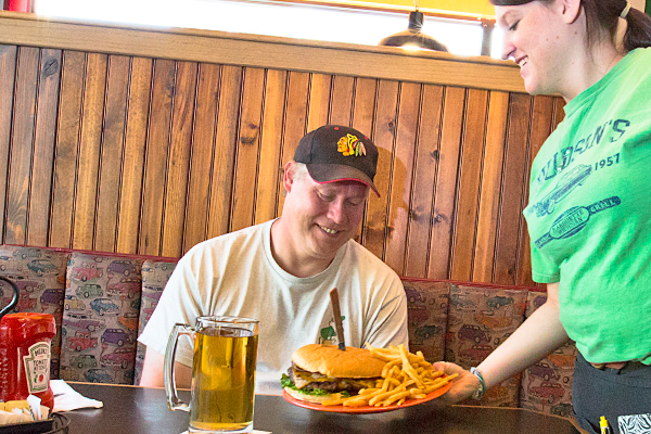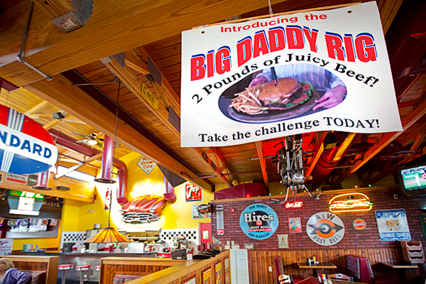 Over the last five years, competitive eaters have been trying to overtake the monster hamburger in the Big Daddy Rig Challenge at Hudson’s Classic Grill and Bar in Marquette. This 1950s-themed bar and grill, with clientele mainly from nearby Northern Michigan University, presents a food challenge that requires contestants to take down one of the bigger burgers on the Peninsula.