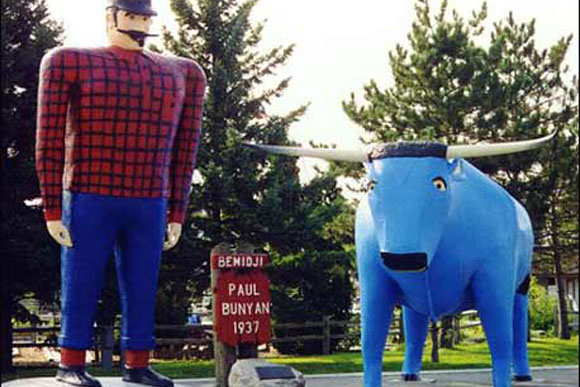 Driving through the Upper Peninsula city of Manistique, I noticed the towering statue of Paul Bunyan, who in that town holds his ax in both hands as if blocking the escape of bank robbers.
