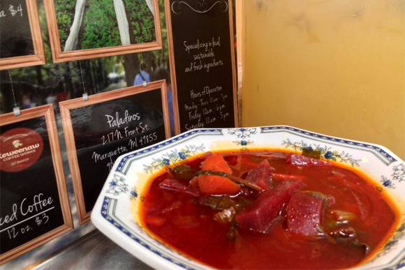 That hasn’t stopped him from setting up shop in the basement of Peter White Public Library, formerly home to Tu Kaluthia–and setting out to make a big mark on the central U.P.’s culinary scene. With Paladino’s, Sear looks to add to a growing crop of local restaurants, including Das Steinhaus and Root 41, that put a premium on scratch-made, locally sourced (to the extent possible) foods. But he’s also genuinely committed to raising the profile of the local businesses that keep him afloat, and to educating the public about their cultural value.