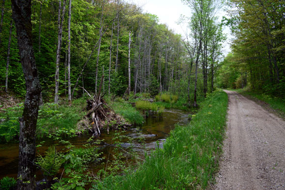 Thick forest opened up, and there’s the two-lane highway, deserted. Turned north towards Shingleton, and biked with zero vehicles on the road. It was a Fridaynoon in late May.