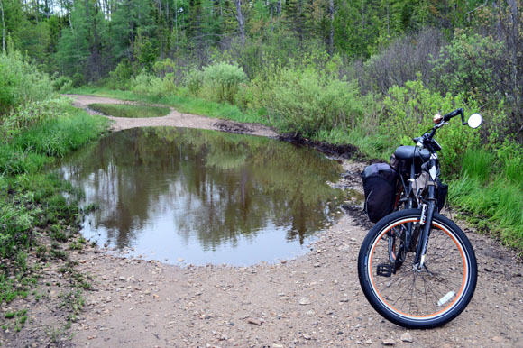 There are lots of tame rail-trails and bike routes in my Lower Peninsula homeland. Smooth limestone, even paved surfaces. You may be surrounded by trees and natural beauty, but usually there’s a busy road nearby, a party store every five miles, a town every ten. The biting insects could be characterized as “pesky” but not “bibical-plague-like.”