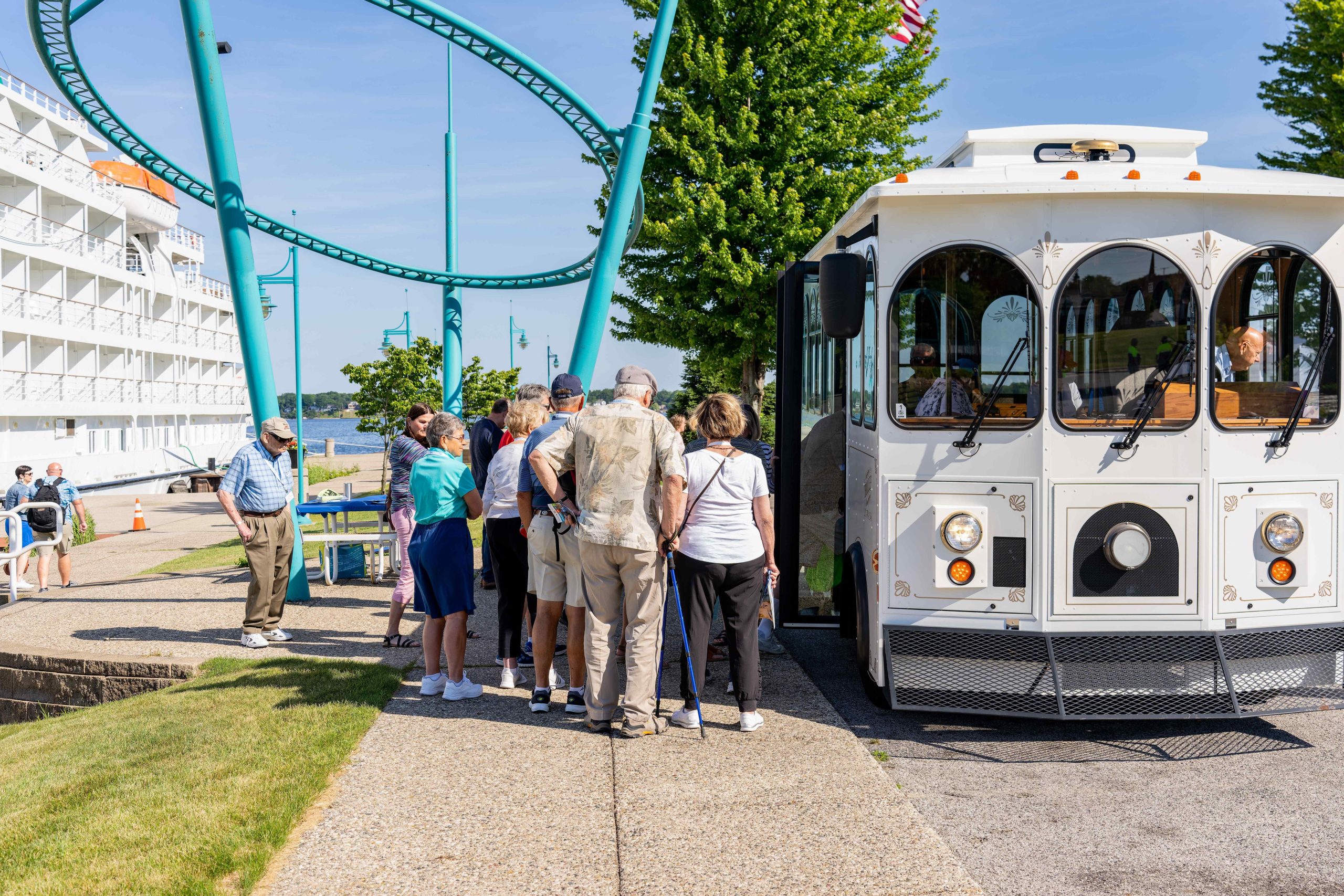 To accommodate visitors, the city runs hop-and-go trolleys that take visitors on a tour of the downtown. Another trolley runs guests to the beaches. Guests of the Pearl Mist also had the option of a planned excursion to nearby Holland.