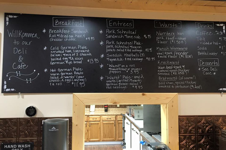 The new restaurant is inspired by authentic German delicatessens and recipes, and focuses on homemade menu items using products from local farmers, like smoked meats, cheeses and vegetables. Breads, soups, entrees, sausages, salads, and sandwiches all are prepared from authentic German recipes, and the deli part of the restaurant allows customers to bring high-quality prepared foods home or along for the ride.