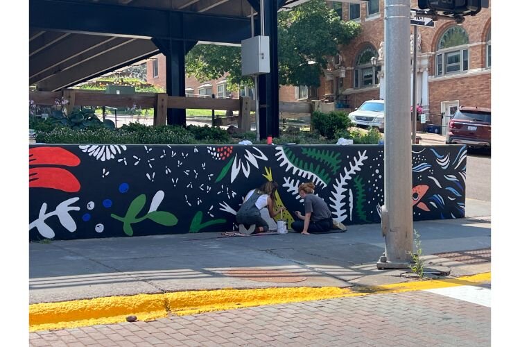 What’s happening: Artists Julie Benda and Kristi Dammann are painting a mural, called “Midsummer,” on a parking structure on a popular walkway in downtown Houghton. “Midsummer” celebrates “the ecology, life and season of the Keweenaw’s midsummer.” The artists were available to meet and answer questions on Tuesday, August 8. The mural is expected to be completed this month.