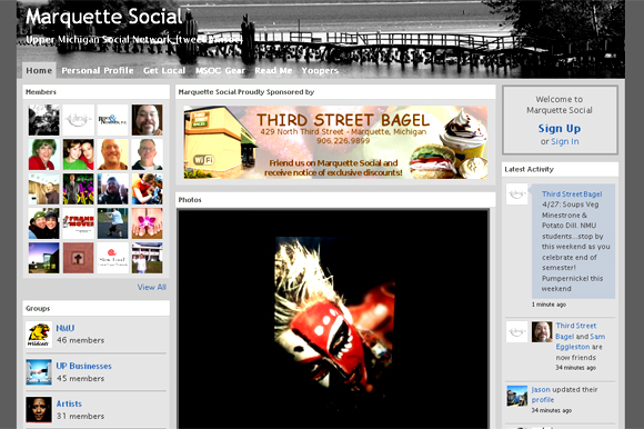 Technology has helped speed it up, however, and now the largest city in the Upper Peninsula is leaping forward and putting both feet right into the future of social media thanks to the founders of Marquette Social. It’s a new social media site, like Facebook or MySpace, that focuses solely on the U.P. social scene, allowing its members to blog, post photos, create profiles and connect with businesses, artists, musicians and local events.