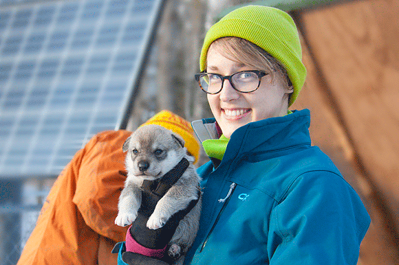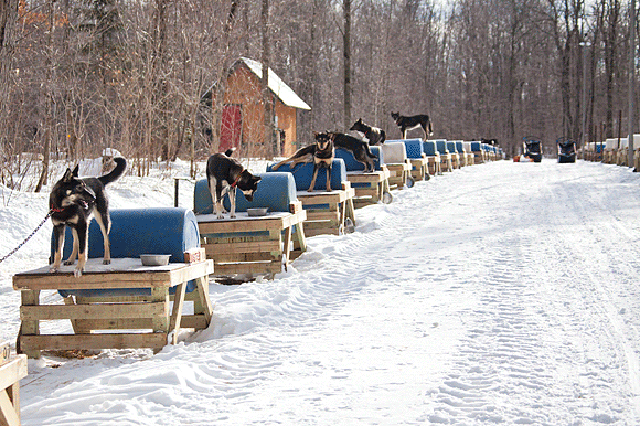 So after some meticulous research, they found just the right place off a dirt road eight miles north of McMillan, and built a couple of off-the-grid cabins and a large kennel for the dogs. Knowing that racing alone wouldn’t pay the bills, during their second winter in McMillan they opened Nature’s Kennel–named for Ed’s first dog, Nature–to the public for both daily and overnight sled dog adventures.