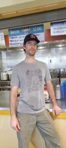 Robert first came to Houghton to study at Michigan Technological University, but, he says, “College wasn’t really my thing.” Instead, he trained as a certified arborist who climbs and cuts down trees. He used wood from trees he cut down to build the Prickly Pine coffee bar, milling it himself. He plans to build furniture and shelving too.