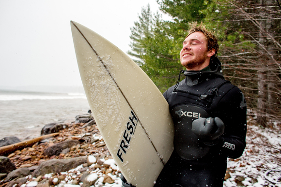 “There really aren’t that many of us out here so when you see someone else out, you’re just stoked to be out with other people,” Schneider says. “But you really have to be committed to surf up here because so much of it is through the fall and winter.