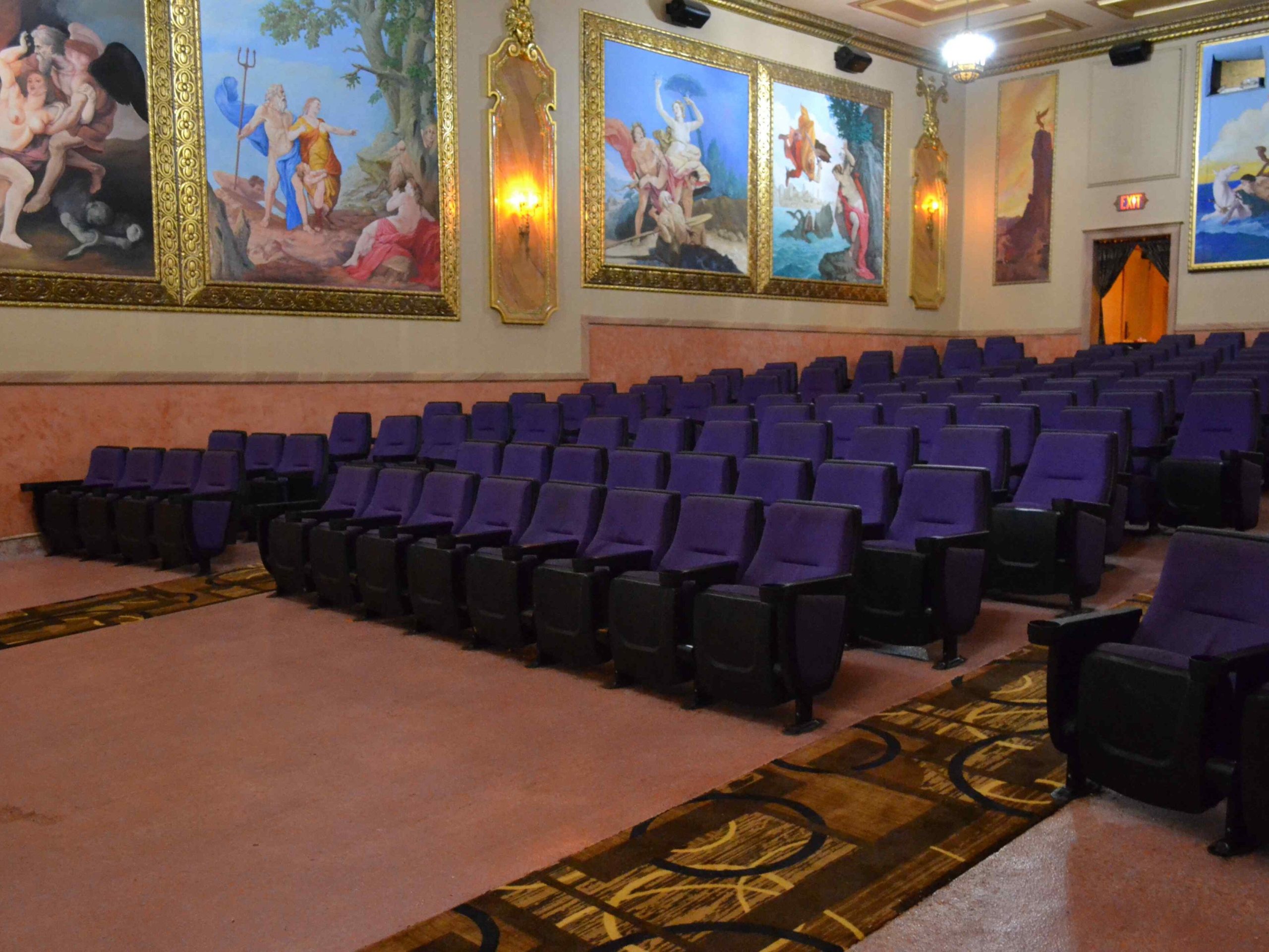 In 2001, the theater closed again for updates as well as extravagant improvements. Italian artisans were brought in and spent nine months doing extensive renovations and redecorating. The theater reopened with real Italian stucco, hand-casted plaster moldings, and Greek murals at the entrance. State-of-the-art seating and new carpeting were installed as well.
