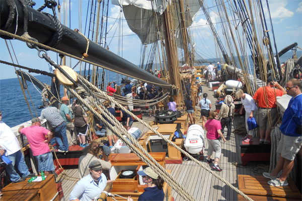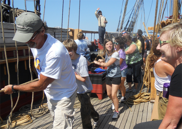 The Niagara, itself 200 years old this year, was in Marquette to celebrate the Cliffs Natural Resources-owned ore dock, which marks its hundredth birthday this summer. It welcomed aboard media representatives, Cliffs employees, several Big Brothers Big Sisters kids and their mentors. Since it’s not a passenger vessel, everyone aboard pitched in to help the crew when needed, and learned about wooden ships, sailing, Great Lakes history, and the environmental studies taking place.