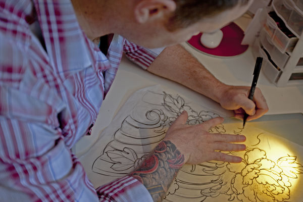 Pemble, who has two artists working with him at Sacred, said he doesn’t have to go far to appreciate outstanding fine art–in fact, seeing the work his colleagues are doing with mediums outside of ink gets him thinking about diving back in.