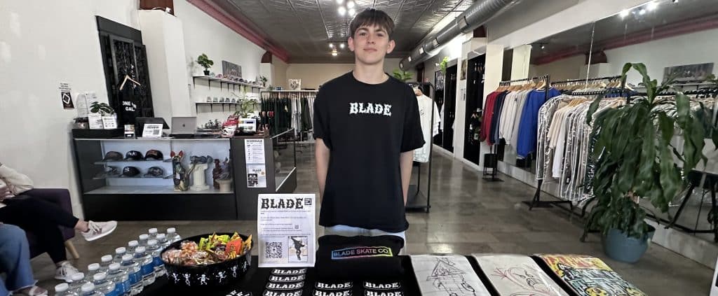 About Blade Skate Co.: Aidryk, who lives in De Pere, Wisconsin, creates skate and streetwear that reflect his style and creativity. Aidryk has been an artist his whole life and has been an aspiring clothing designer for a couple of years, before kicking it into gear and launching Blade. He makes many of the T-shirts at home in the basement and he has an online store through a third-party printer. His skatedecks are also printed and shipped via a third party. Both are featured on his linktree: linktr.ee/bladeskateco.